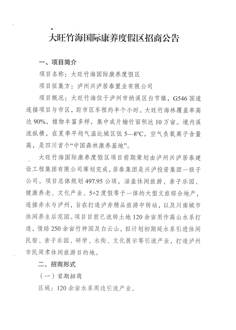 大旺竹海國際康養(yǎng)度假區(qū)招商公告