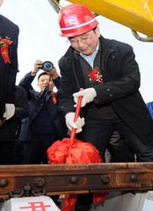 (市委書記朱以莊為最后一道軌排擰緊螺栓)